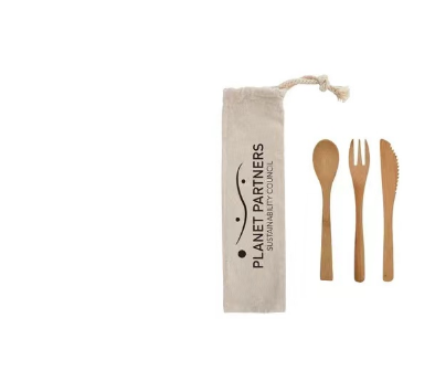 Popular Bamboo Utensil Set in Cotton Travel Pouch--Printed With Your Logo