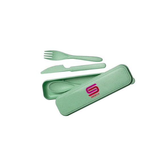 Eco-friendly branding at its best. This retail chic wheat straw cutlery set is BPA Free, and suitable for hot food and liquids. Choose from a variety of colors to compliment your logo. Comes in a handy wheat straw box, so you'll never misplace your set and creates the perfect gift. Great promo for workspaces, Earth Month campaigns, and celebrations.