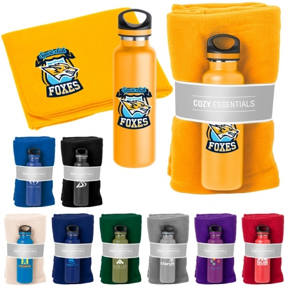 These water bottles & custom blankets gift sets with your imprinted logo will give you brand recognition for years to come.