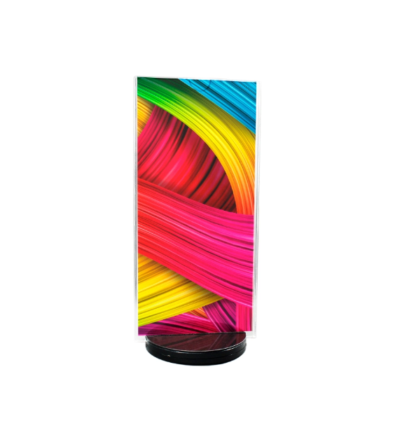 The product is made of high-quality acrylic material, with a rotatable acrylic base at the bottom, which allows advertising to easily change its direction.