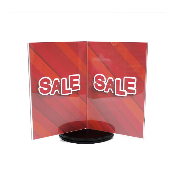 The product is made of high-quality acrylic material, with a rotatable acrylic base at the bottom, which allows advertising to easily change its direction.